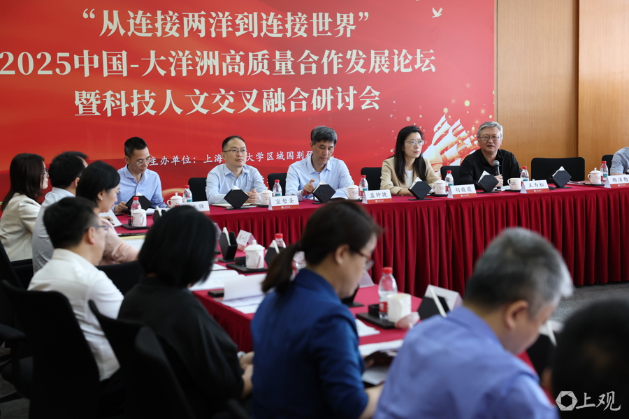 作为牵头方,上海交通大学与大洋洲地区的互动交流最早可追溯到19世纪10年代,目前交大也是全球U21联盟成员、环太平洋大学联盟成员,在气候治理、能源转型、文化交流、人才培养等方面与大洋洲保持密切联系。今夏新成立的上海交通大学区域国别研究院,正推进实现“学术研究、咨政建言、人才培养、学科建设和国际传播”五位一体的发展目标。上海交大外国语学院院长尚必武表示,学院将与区域国别研究院院长彭青龙教授等,共同探索区域国别学科建设的新模式、新路径,持续推动外语学科与区域国别研究的深度融合与全面转型。