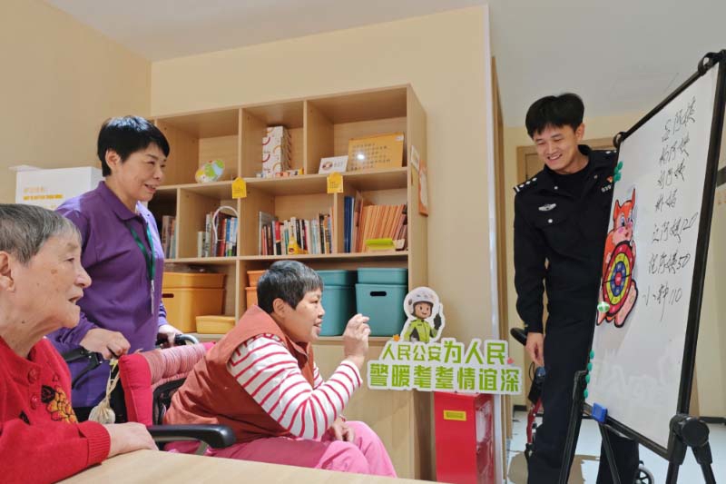 惊喜远不止于此,民警们为现场每一位老人送上柔软厚实的围巾。“天快冷了,围着它暖和。”这份由肖玉泉中队送出的精神与物质的双重温暖,在寒潮来临前,为老人们筑起一道贴心的屏障。