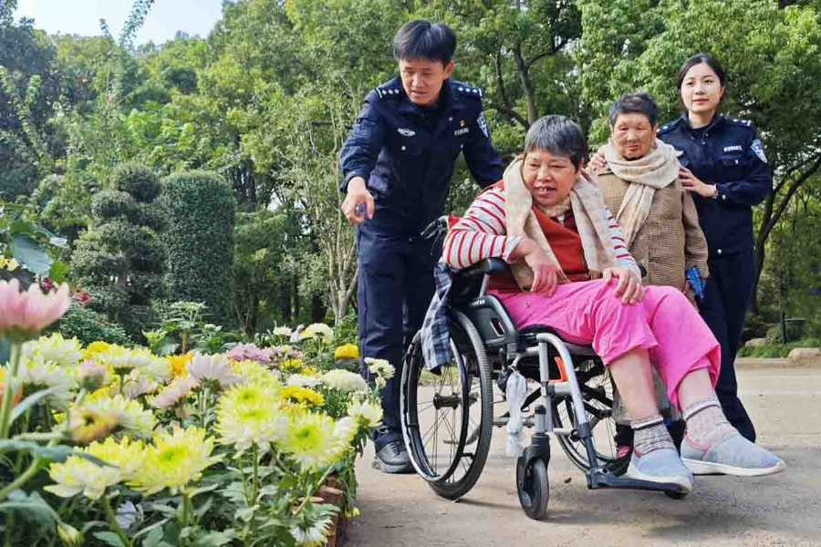 “琳妈,今天天气好,我们去公园走走。”活动室内的互动环节告一段落,倪嘉辉推着琳妈走出养老院大门。因身体不便,平日里陈爱琳自己几乎从不外出。倪嘉辉每次来看望,只要时间允许,他都会推着琳妈外出散步散心。近期恰逢共青森林公园正在举行菊花展,倪嘉辉早早预约好无障碍出租车,规划合适的出游路线,准备带琳妈一同游园。