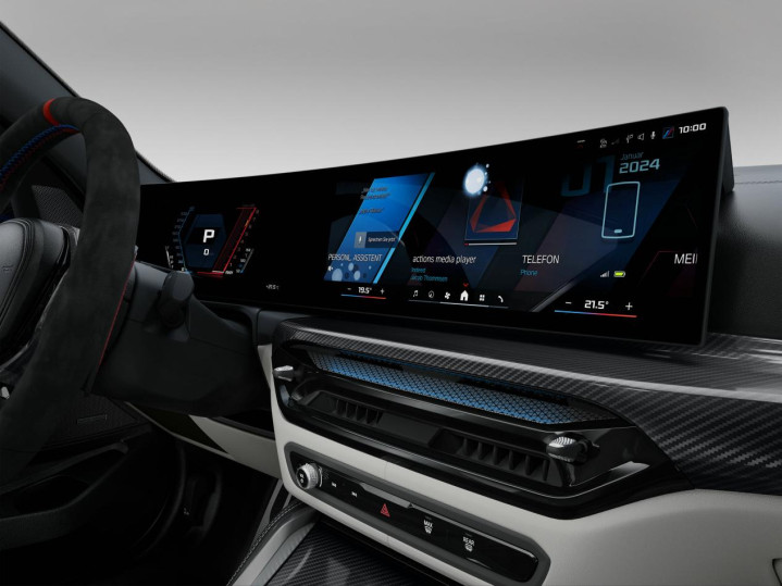 细节处的性能基因同样清晰可见。覆盖车身的碳纤维组件,包括:多边形进气口、后视镜罩、尾部扩散器,以及车顶扰流板,在强化运动姿态的同时,也让空气流动更高效—轻量化与美感在此达成平衡。座舱内,M碳纤维座椅让轻量和舒适兼得,为长途驾驶保留惬意体验。