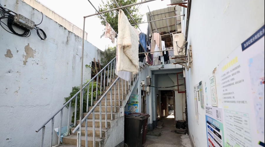 沿着狭窄的水泥楼梯走上二楼,转角有一棵挂满果实的桔子树,住在这里已经15年的王老伯对记者说,很多居民已经在这里住了几十年,在弄堂里种了不少果树,如果早些天来还能吃到葡萄呢。相较于春华秋实的浪漫,这里的生活条件可就远远谈不上浪漫了。