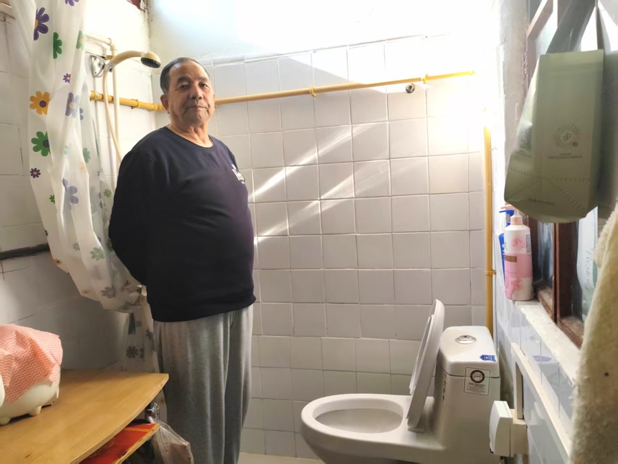几个月前,江浦路街道对老房子进行了因地制宜的改造:条件合适的,在屋子里安装了坐便器;房间实在太小装不了的,则在走廊对面的厨房里划了一小块区域安装。有的人家原本厨房里有一个浴缸或者淋浴龙头,就结合在一起进行了改造,不仅安装坐便器不用居民掏钱,修补瓷砖等也都由街道出钱。同时,还对上下水管都进行了改造,“眼泪水”变成了一拧开龙头就真正能哗哗流淌的“自来水”,洗澡洗衣再也不是难事。这番改造结束后,大家都觉得,“如今的日子,‘方便’真正方便了! ”